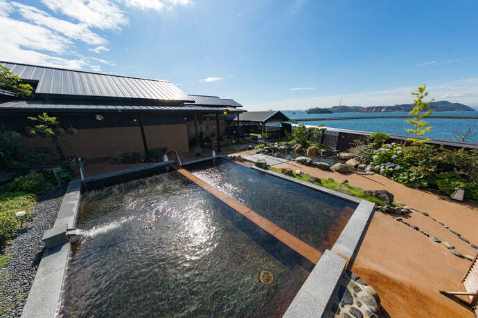 宿泊中は、隣接する「瀬戸内温泉たまの湯」に入浴を。オーシャンビューの湯船で、ゆったりと疲れを癒すことができます。