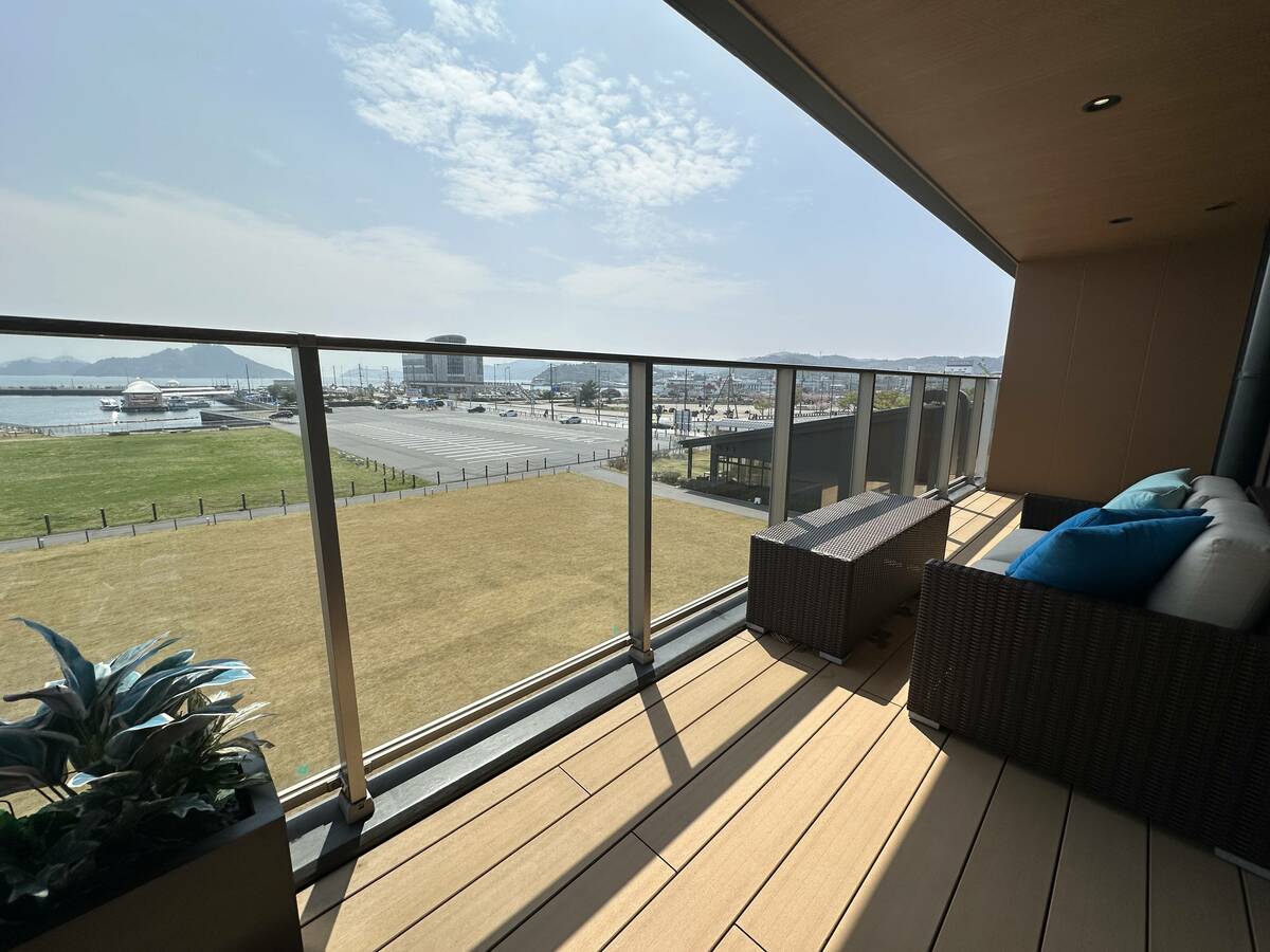中でも、2部屋限定のスイートルームは、瀬戸内海とバンク(競争路)を一望できる大きな窓とテラス、半露天のビューバスなどがそろっています。また、競輪選手から寄贈されたマシンパーツを使って作られたシャンデリアも設置されており、アートを体感できるでしょう。
