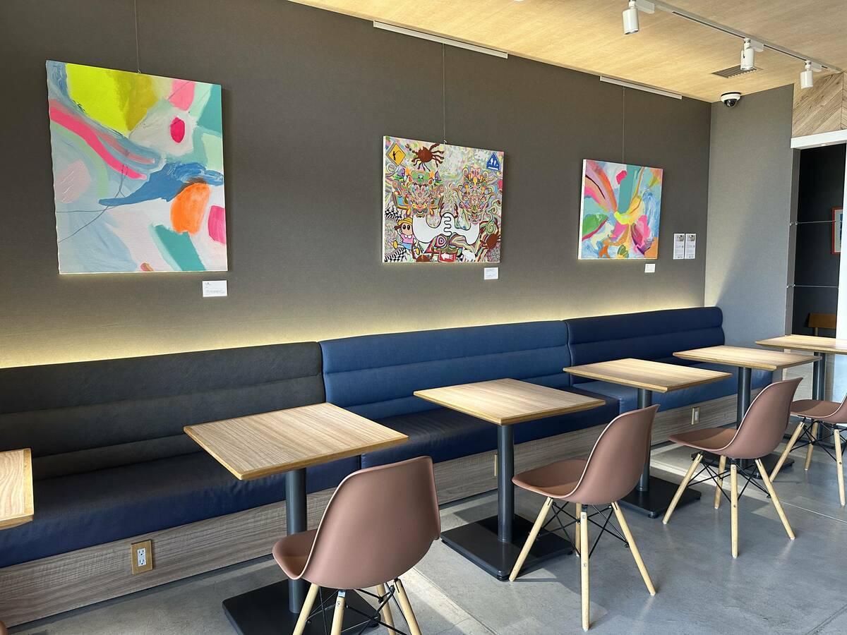 アート展示を企画運営する、同ホテルプロジェクトチームのアートディレクター・山田茂さんの作品も展示。また、地元の就労継続支援A型事業所「ありがとうファーム」の皆さんの作品も鑑賞できます。