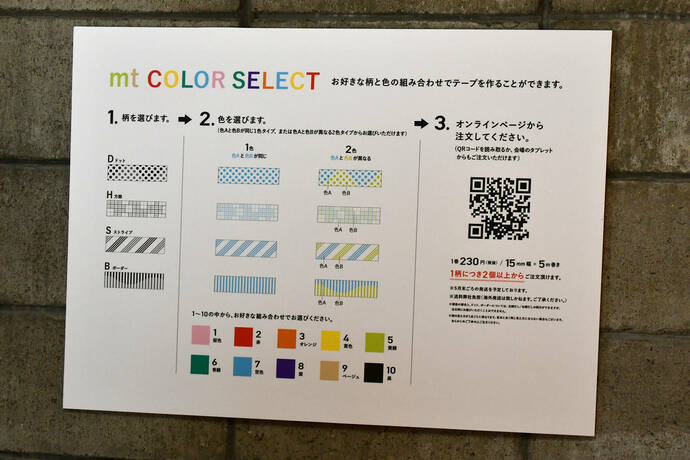 建物を移動すると、また違う限定アイテムのコーナーへ。オーストラリアのアーティスト「Build & Pop」さんとのコラボで制作されたmt柄や、会場内の装飾に使われたテープが販売されていました。