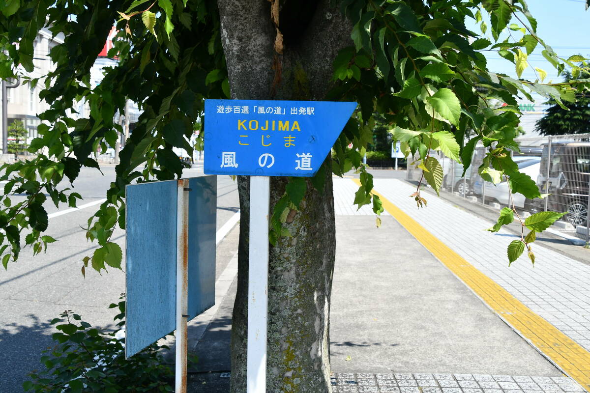 この旧児島駅はいまも活用されている。旧児島駅から旧下津井駅まで、約6.3キロにわたる廃線跡はいまサイクリングロード「風の道」として整備されていて、旧駅舎は児島側の起点となっている。