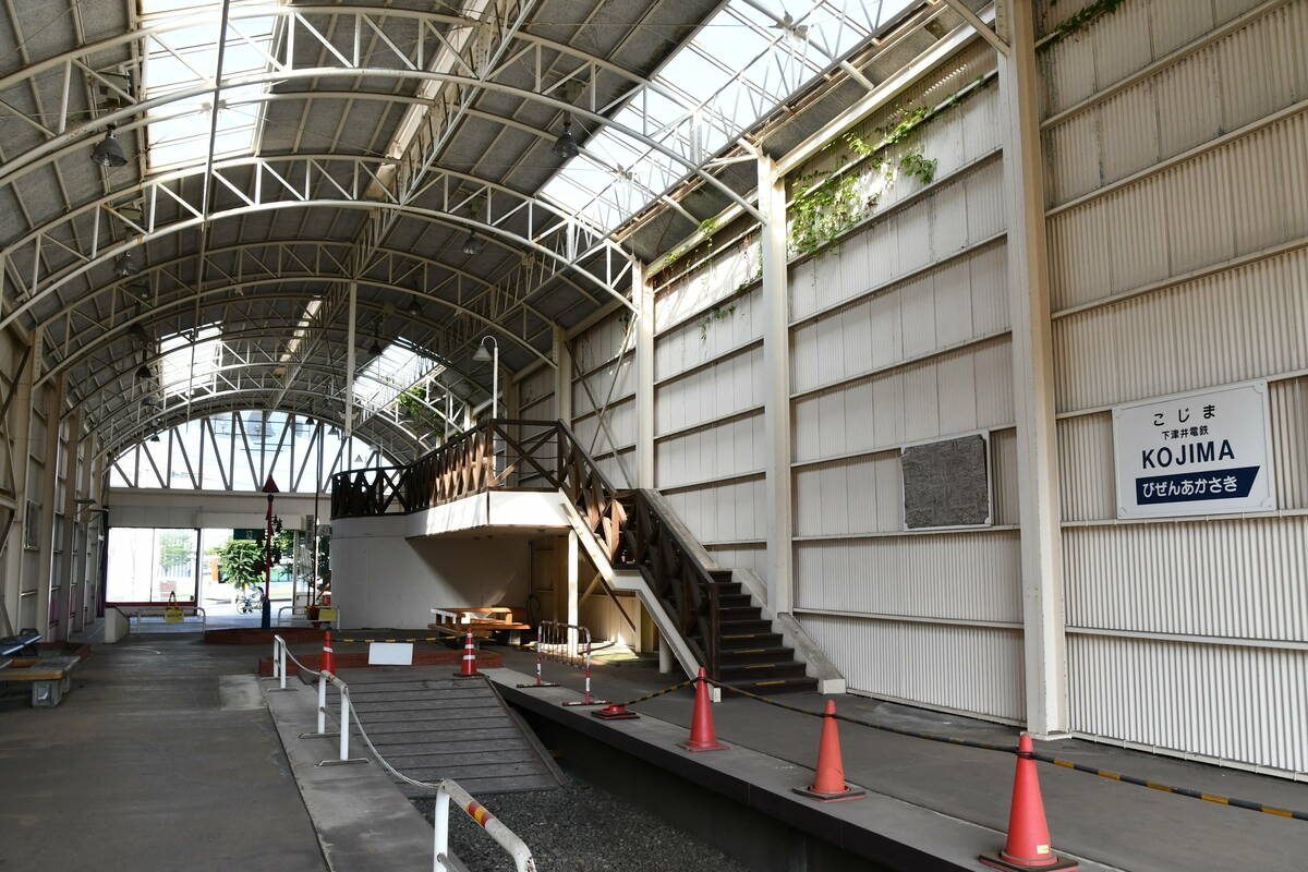 この駅は、かつて下津井電鉄線の終着駅として1913年に誕生。当時の児島は、港町・下津井と倉敷を結ぶ交通の要だった。80年近く地元の足として活躍したあと、1991年の下津井電鉄廃線とともにその役目を終えた。