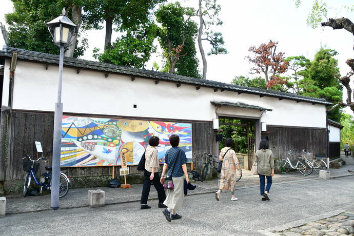 10月18日、秋晴れの光に包まれた倉敷美観地区では、提灯が飾られた町家の格子戸が一斉に開かれ、先祖伝来の屏風や現代の作家や学生による屏風が玄関先に飾られました。「倉敷屏風祭」は、江戸時代の風情を今に伝える白壁の町並みを舞台に行われる秋の恒例行事で、今年も約30軒が参加。倉敷美観地区の通りがまるで屋外美術館のような賑わいを見せました。