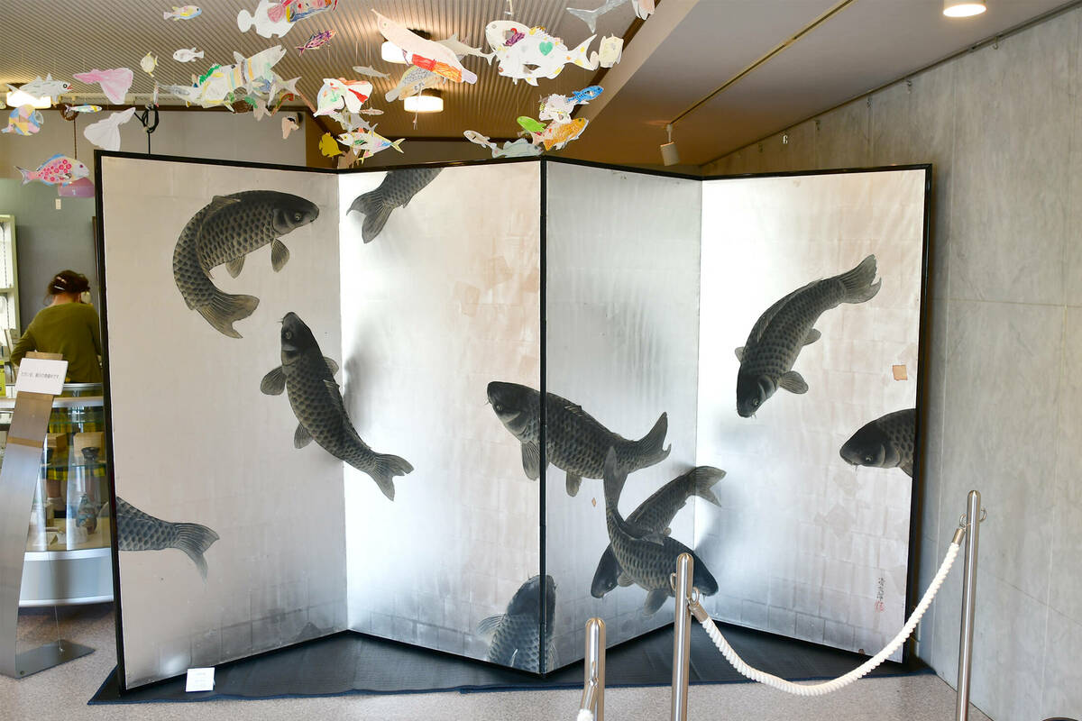 明治から昭和初期にかけて活躍した洋画家・児島虎次郎による屏風。中国・江西省「廬山」訪問時のスケッチをもとに制作されたと伝わり、長江と鄱陽湖の風景が描かれています。倉敷川に面した語らい座 大原本邸に展示。