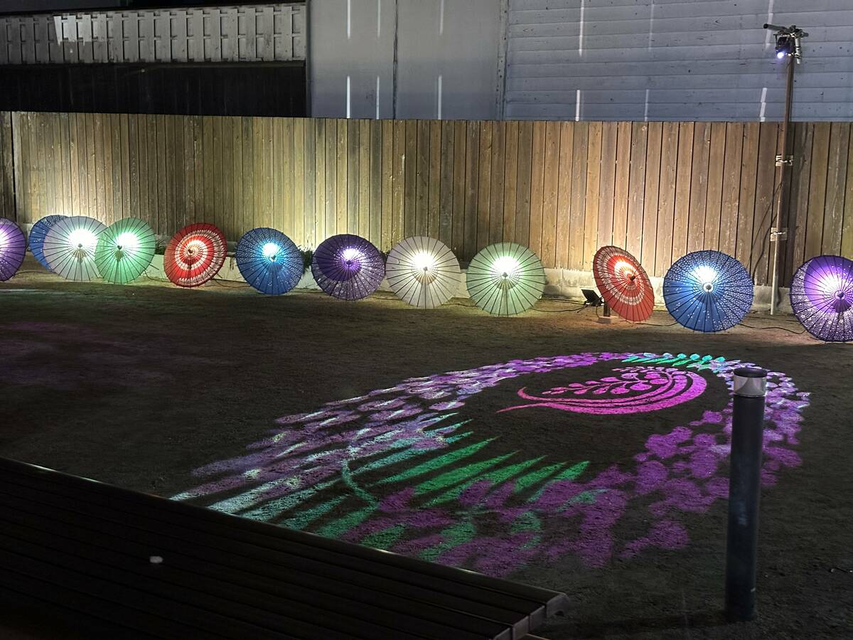 このほか、和の伝統を感じさせるあちてらす倉敷や阿知2丁目広場では和傘イルミネーションやプロジェクションマッピングによる映像演出も加わり、和洋折衷の美しい街並みが光のアートで彩られています。