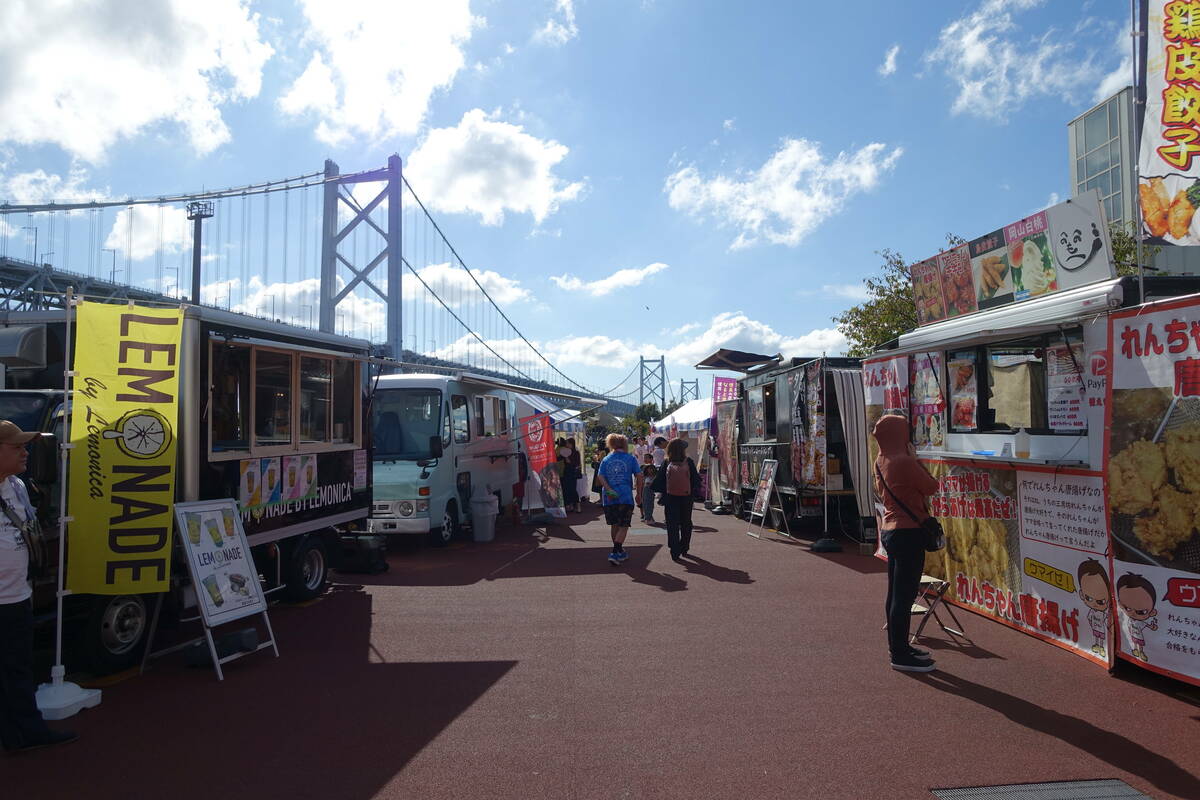 天然アユの塩焼きや、蛇口から注ぐみかんジュースなど、瀬戸内らしいグルメが登場。レタスやぶしゅかんといった地域の特産品も並びます。農林水産省や本四高速によるPRブースでは、イベントならではの体験も楽しめます。