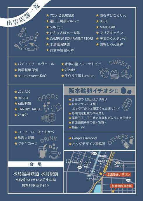 イベントは、倉敷・美星を拠点とする阪本鶏卵が主催。自然豊かな美星町で、自家製発酵エサとストレスの少ない環境で育った鶏の卵「星の里たまご」を広く知ってもらうため、地域活性化を目的にスタートしました。水島での開催は今回で4回目です。