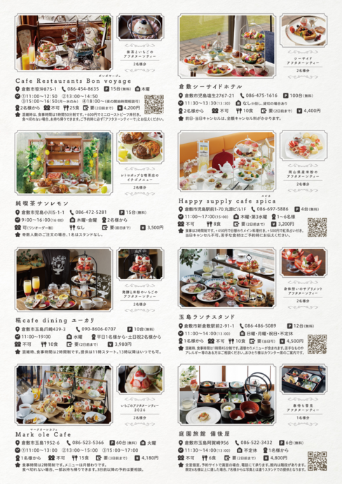 甘いだけでなく、空間や時間そのものを楽しめるのが「倉敷アフタヌーンティー」の魅力。この冬は、自分のペースや好みに合った一軒を選び、倉敷ならではの“いちご時間”を過ごしてみてはいかがでしょうか。