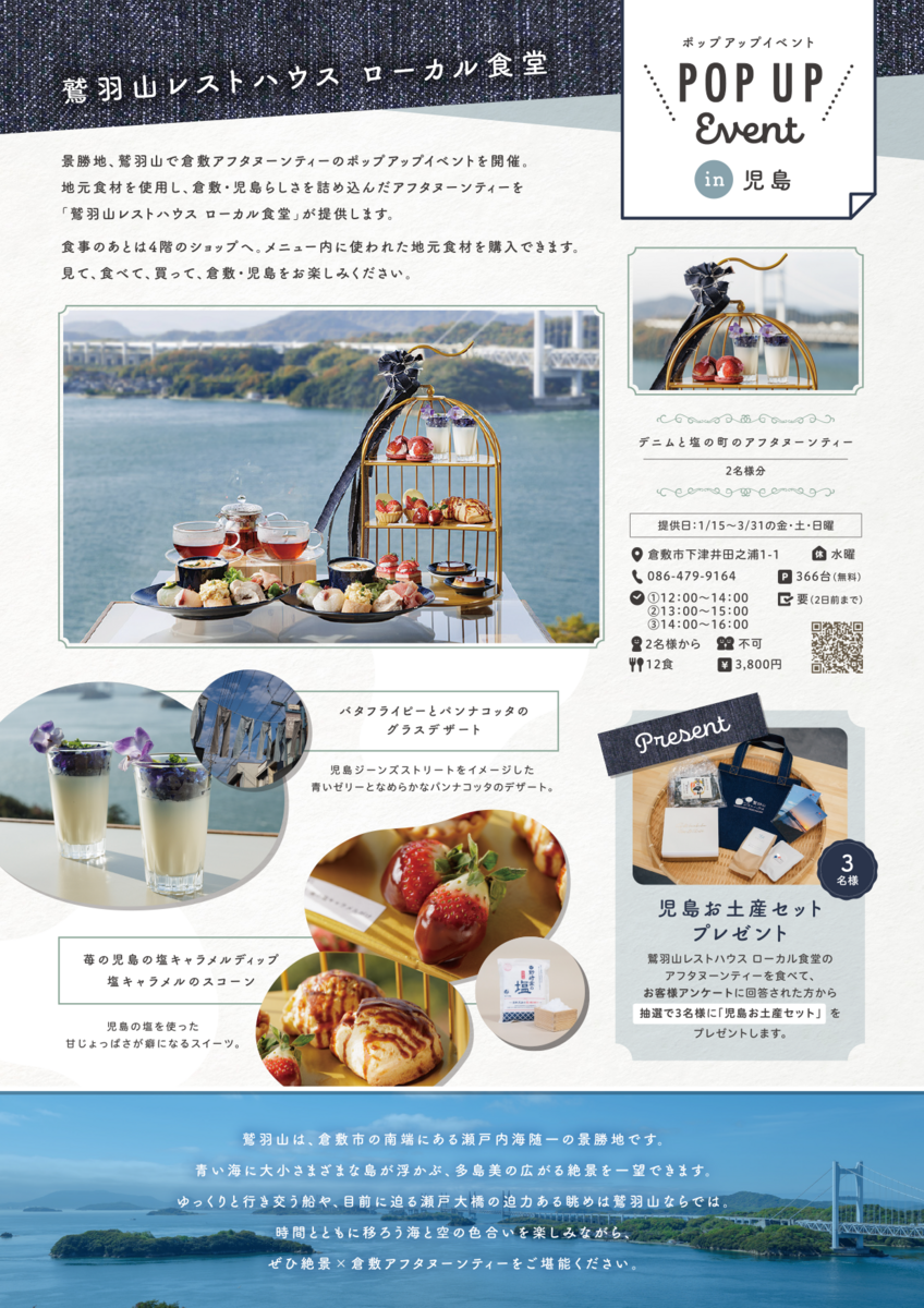 倉敷の冬から春にかけて恒例となったグルメイベント「倉敷アフタヌーンティー」。2026年冬は、1月15日から4月15日までの期間、倉敷市内のカフェ・ホテル・レストラン計33店舗が参加して開催されます。