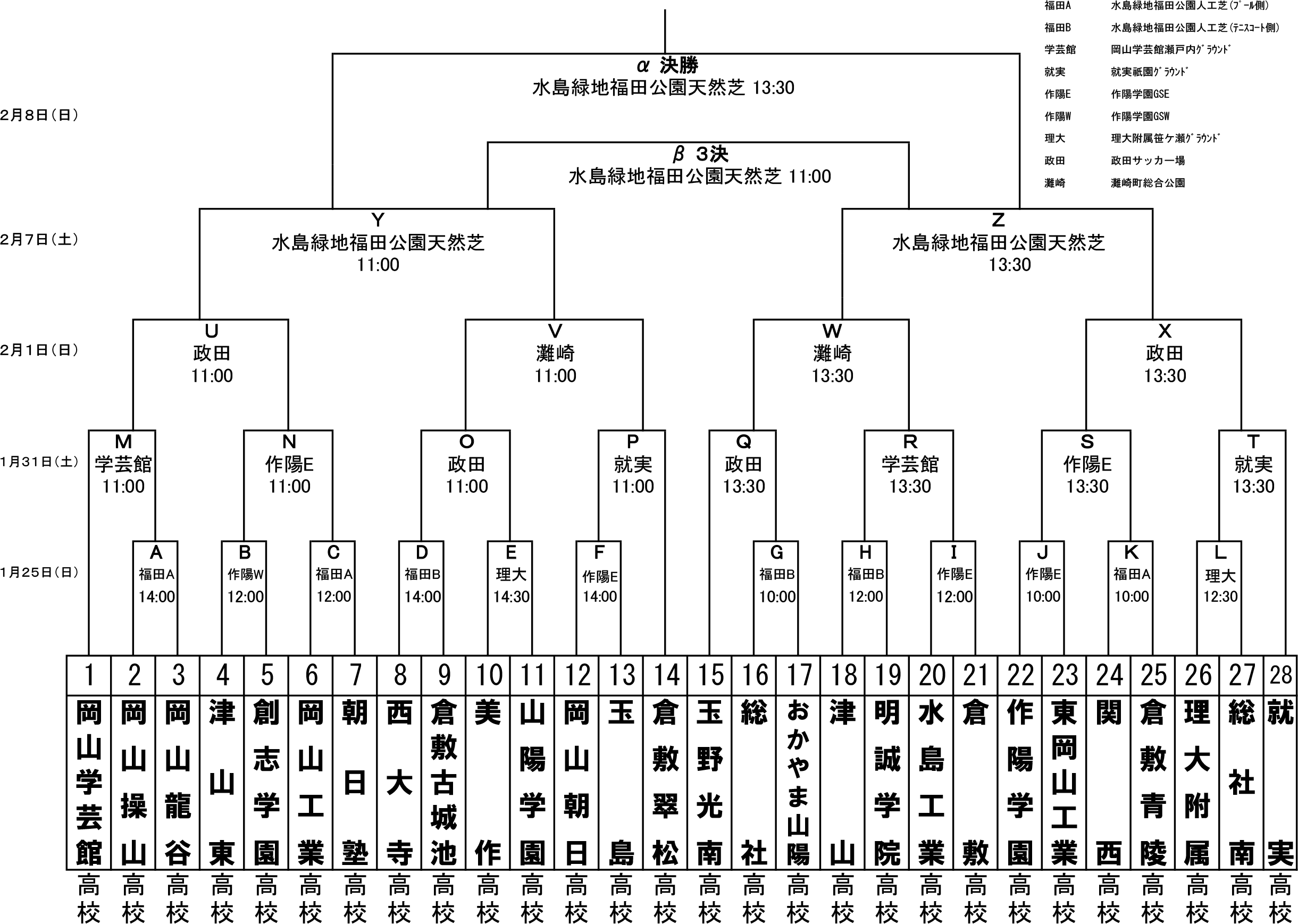 岡山学芸館、岡山操山、岡山龍谷、津山東、創志学園、岡山工業、朝日塾、西大寺、倉敷古城池、美作、山陽学園、岡山朝日、玉島、倉敷翠松、玉野光南、総社、おかやま山陽、津山、明誠学院、水島工業、倉敷、作陽学園、東岡山工業、関西、倉敷青陵、理大附属、総社南、就実