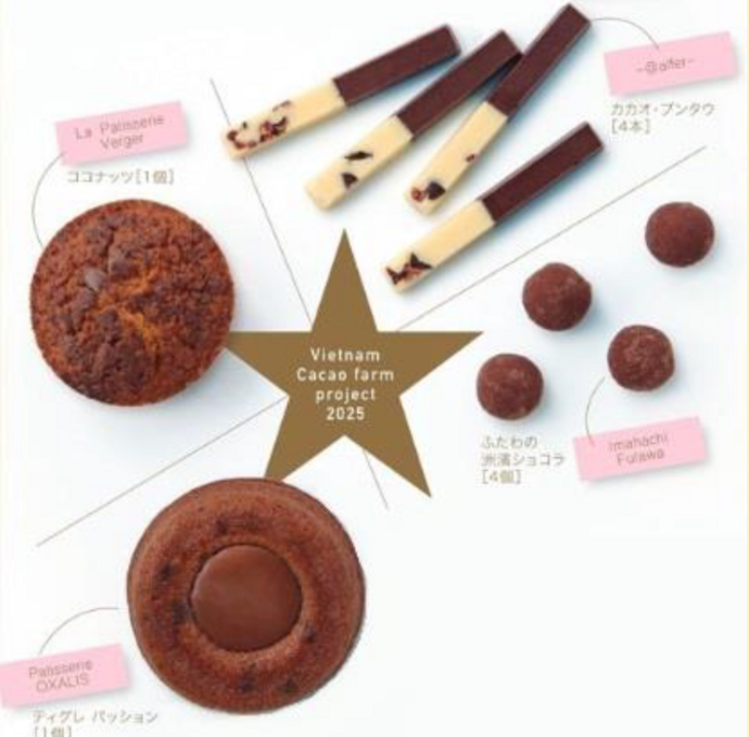 1月24日からは、岡山県内の人気洋菓子店4店舗(洋菓子工房ベルジェ/Patisserie OXALIS/今八ふたわ/-@alfer-)が、ベトナム産カカオを使って開発した特別なショコラスイーツを展開。