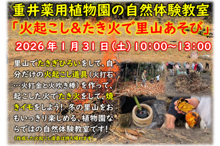 倉敷市浅原にある重井薬用植物園で、冬ならではの自然体験イベント「火起こし&たき火で里山あそび」 が開催されます。里山でた…