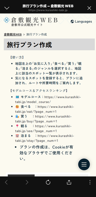 - 選ぶ: 人気スポットやモデルコースを見ながら、行きたい場所をチェック。