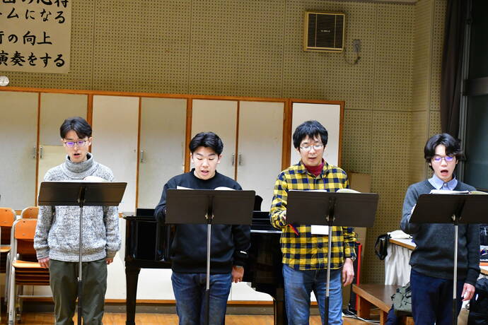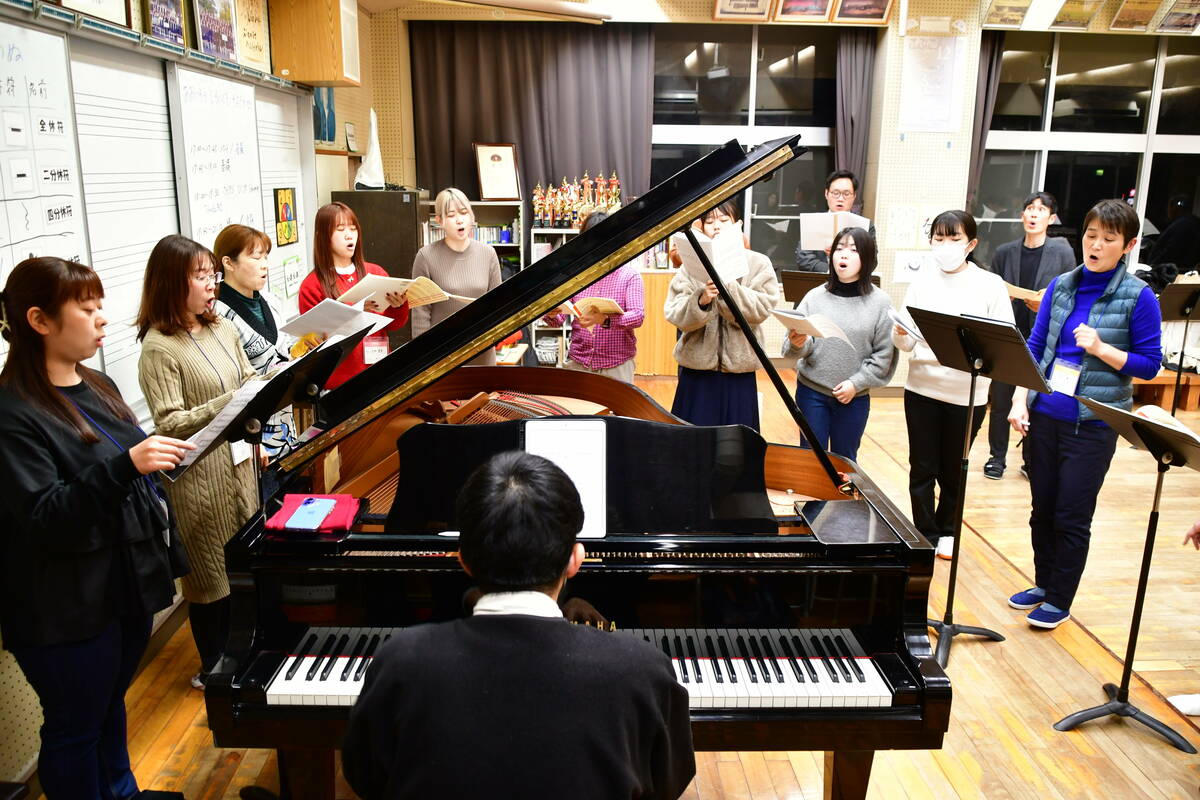 総社市を拠点に活動する合唱団こぶは結成34年目を迎える混声合唱の実力派集団です。3月8日に迫ったコンサートを前に練習に熱が入っています。今回のコンサートは4部構成。それぞれの「聴きどころ」は次の通りです。