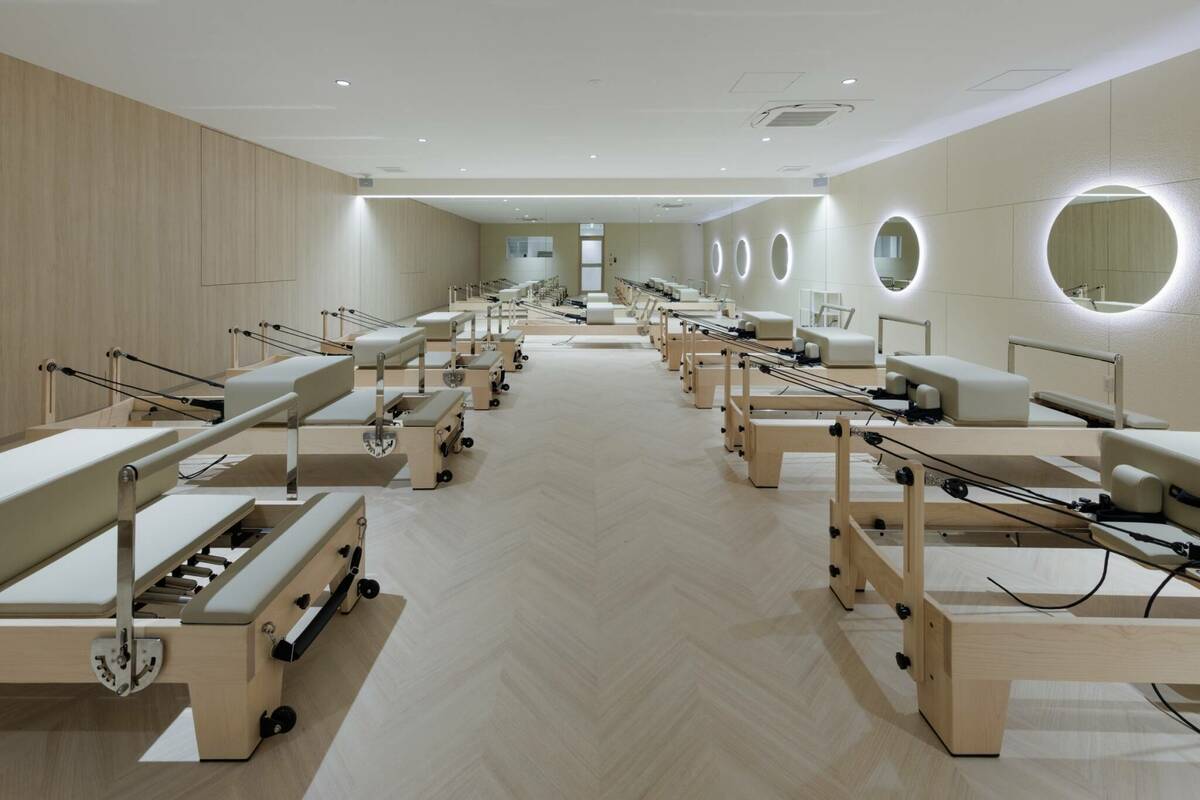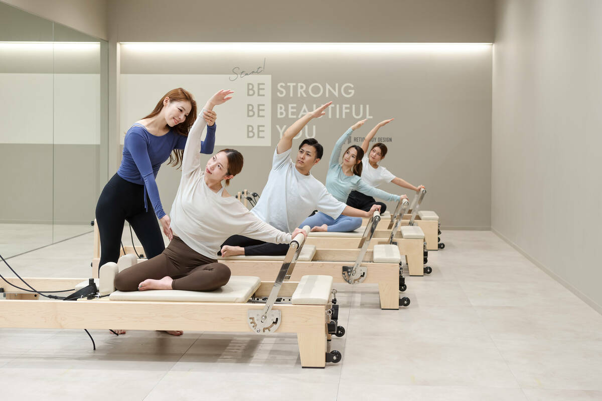 レシオ総社店の2階にはマシンピラティスのスタジオもあり、総社唯一のグループピラティスを開講しています。男女問わず人気のマシンピラティスは、マシンの滑車やバネが動きの補助をしてくれるので無理のないエクササイズが可能!体の深層部(インナー)を鍛えて姿勢を綺麗に整えてくれます。