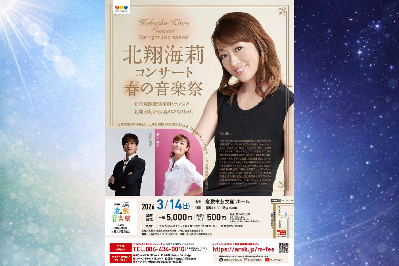 【第40回倉敷音楽祭】北翔海莉 コンサート 春の音楽祭|3月14日(土)開催