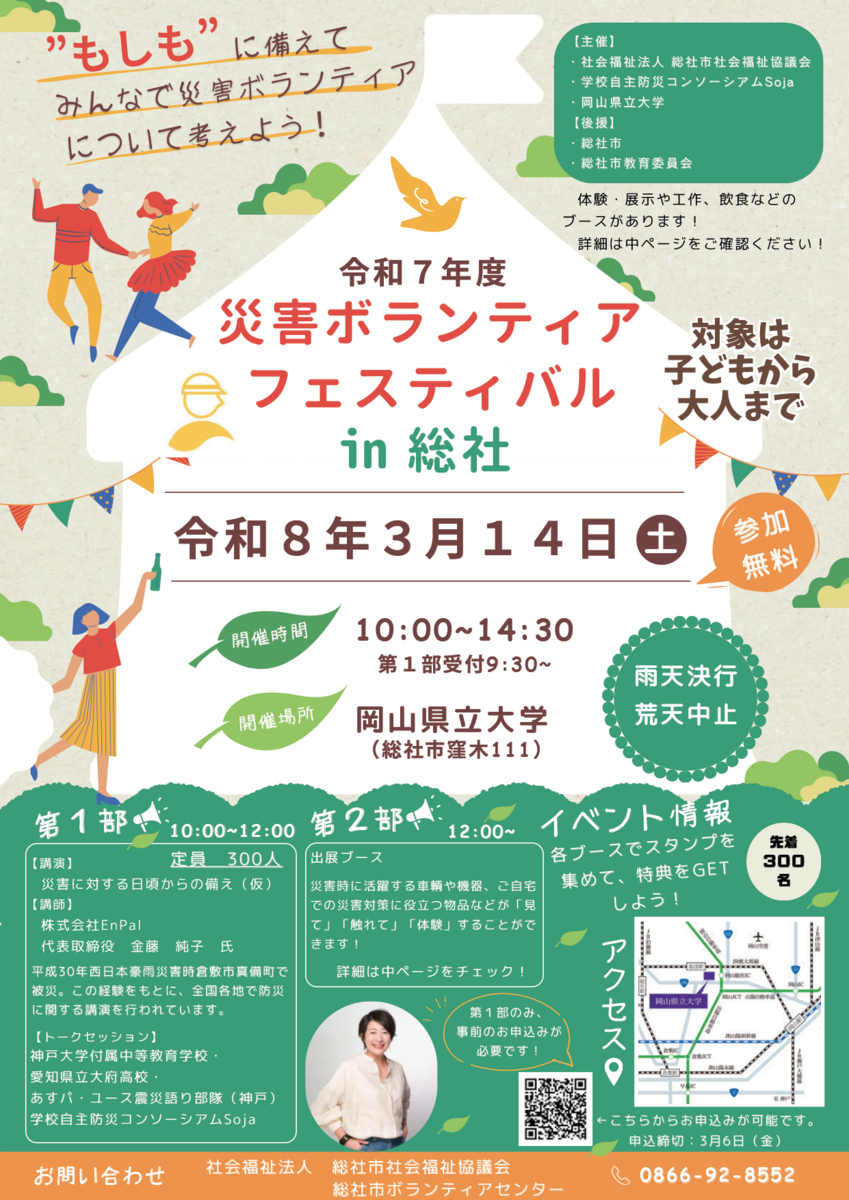 主催:総社市社会福祉協議会、学校自主防災コンソーシアム Soja、岡山県立大学