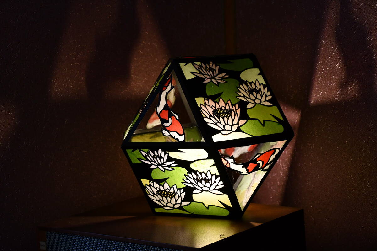 切子細工のような繊細な模様から漏れる光が、斎館の和の空間を幻想的に照らし出します。写真映えする美しさは、夜の美観地区散策のハイライトにぴったりです。倉敷光作所がプロデュースする、和の情緒あふれる光の演出が楽しめますよ。