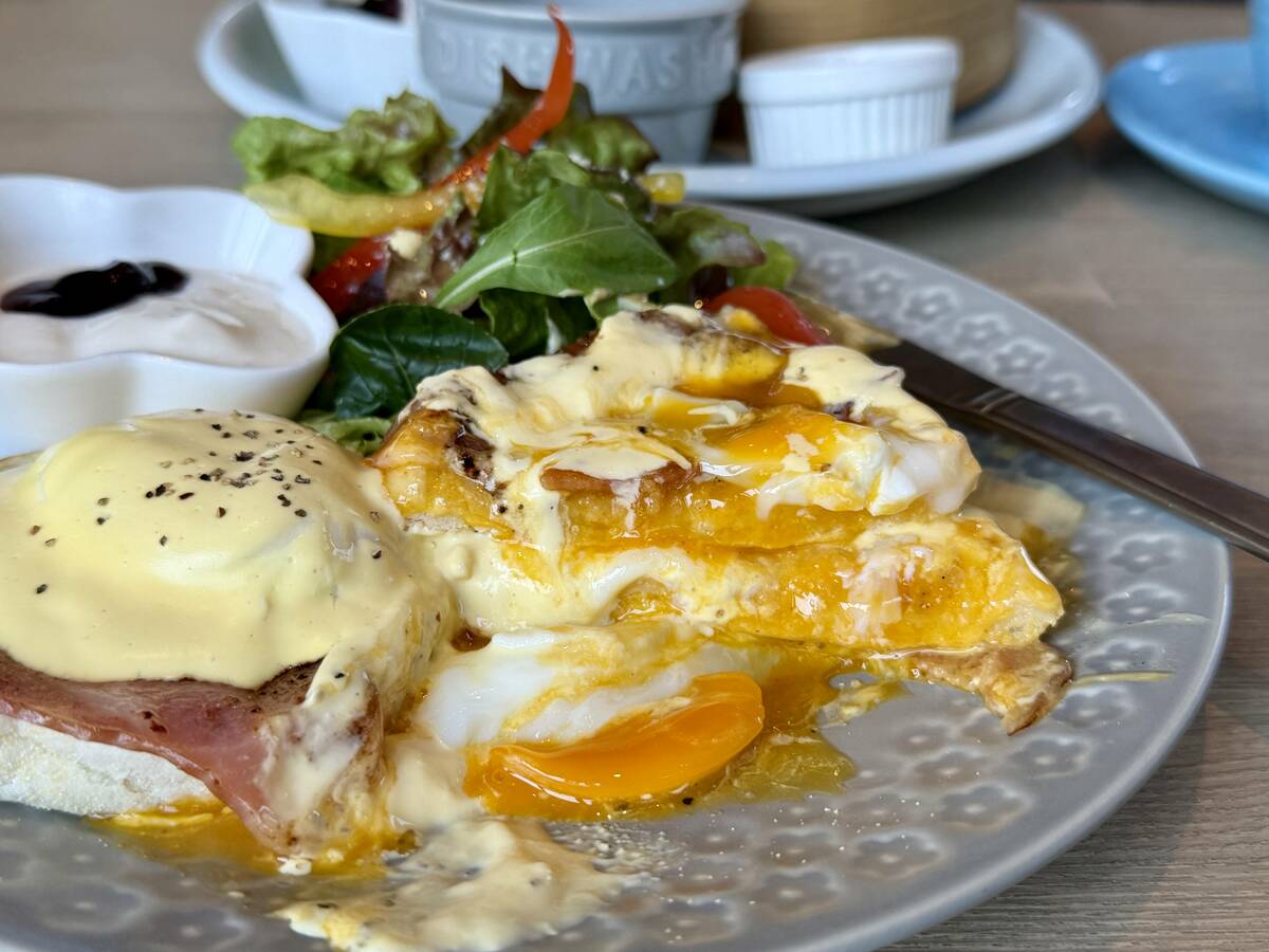 今回は、気になっていたエッグベネディクトと、蒸したてベーグルのモーニングプレートを注文してみることにしました。