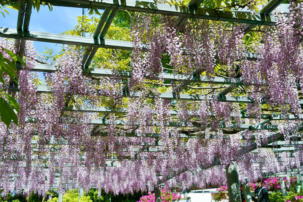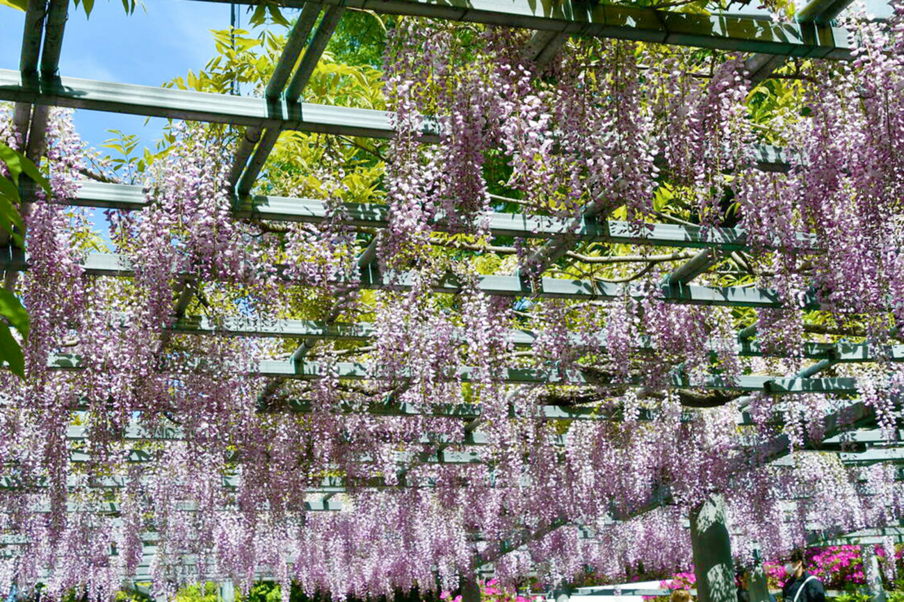 阿智神社では、岡山県指定天然記念物「阿知の藤」の見ごろに合わせて、「藤見の会」を令和8年4月25日(土)・26日(日)の2日間、開催します。会場では、藤の下で春の風情を感じながら、ゆっくりと花を楽しむことができます。