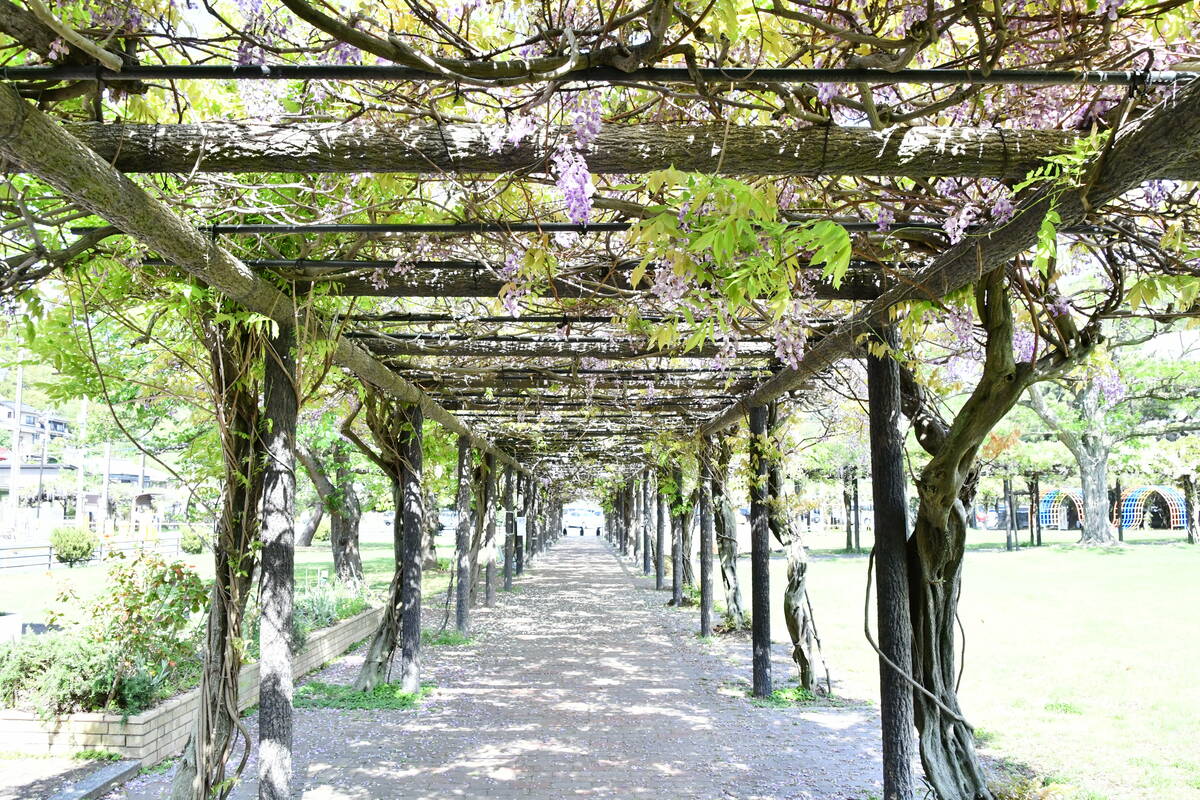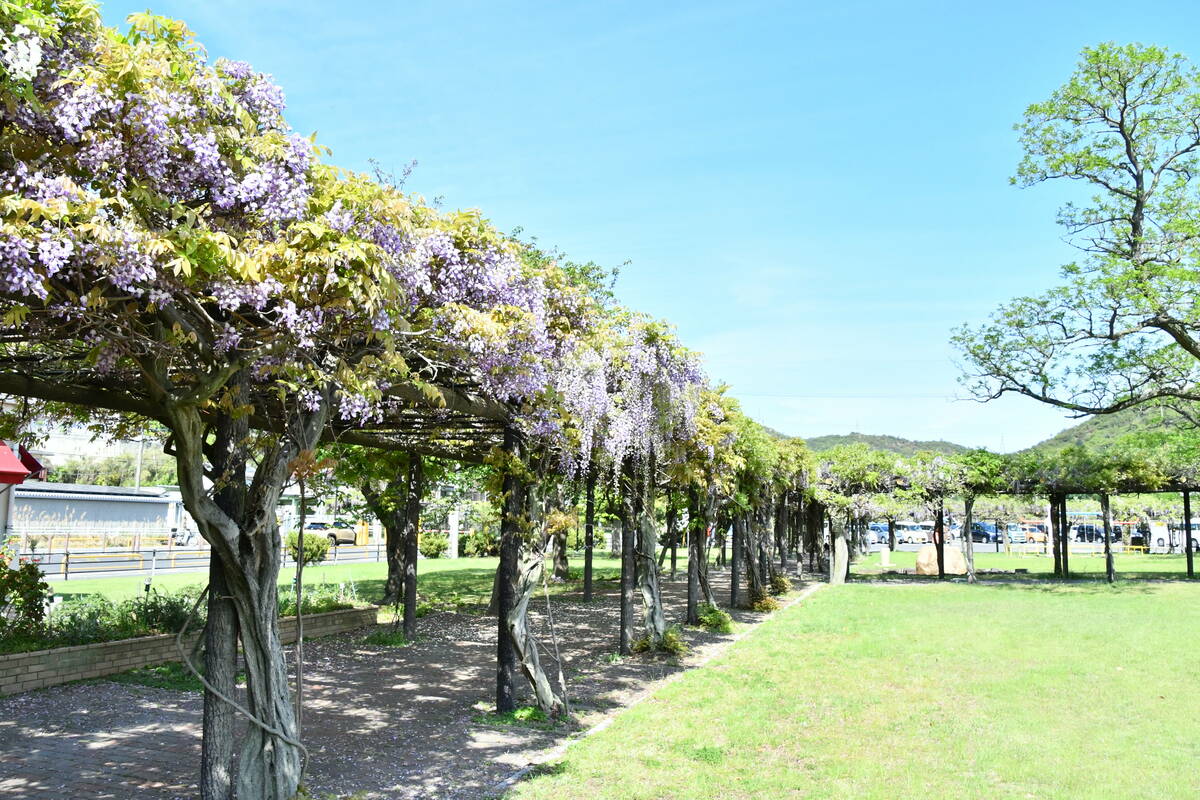 全長900mの藤のトンネル!玉野・渋川公園の藤棚が見頃 今年は早いペースで開花