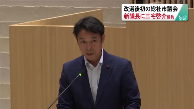 改選後初めてとなる総社市議会の臨時議会が開かれ、新しい議長に三宅啓介議員が選ばれました。 総社市議会には、先月21日の選挙で選ばれた22人の議員が出席しました。新しい議長には3人、副議長には1人の立候補があり候補者が意気込みを述べた後、選挙が行われました。選挙の結果、出席議員22人中15票を獲得した三宅啓介議員が議長に決まりました。三宅議員は現在4期目の48歳で、3市村合併後の総社市議会では最年少...
