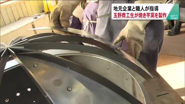 玉野商工高校の生徒が、地元の企業と職人から指導を受けながら焼き芋釜づくりに挑戦しました。 玉野商工高校機械科の1年生から3年生12人が、鉄加工製品などを手がける金田コーポレーションの本社工場で作業を行いました。 今回担うのは、真っすぐな鉄を加工して焼き芋窯の蓋を作る工程です。 指導したのは門や柵などの建築金物を手掛ける玉野市の鍛冶職人青山裕次さん。 生徒は15cmほどの長さの金属の板をガス炉に入れお...