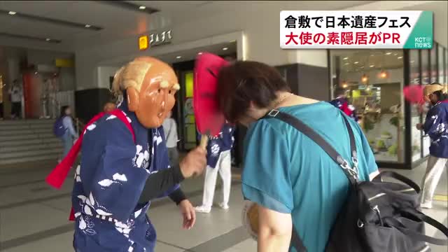 今月25、26日に倉敷市で開催される「日本遺産フェスティバル」を広めようと、くらしき日本遺産大使の「素隠居」がJR倉敷駅でPRを行いました。 JR倉敷駅に現れたのは、「くらしき日本遺産大使」に任命されている、素隠居のじじとばばです。6人の素隠居が駅の利用者へ丸うちわ400枚やチラシ200枚を配布したり渋団扇で頭を叩いたりして、二週間後に開催が迫った「日本遺産フェスティバル」をPRしました 。日本遺...