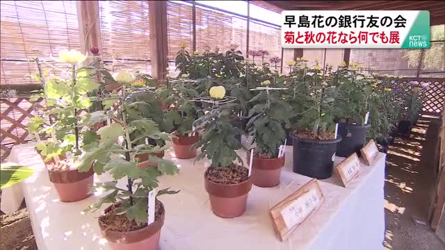 丹精して育てた菊と秋に見ごろを迎える植物が一堂に会す展示が早島町で開催されています。 早島町中央公民館できのう(29日)から開催されている「菊と秋の花なら何でも展」には早島花の銀行友の会のメンバー19人が育てた菊や秋の植物61点が並びます。夏の暑さで生育が遅れた菊も少しずつ花を咲かせ始めていて大菊や福助、だるま仕立てといった様々な種類が並び来週には見ごろを迎えそうです。会場には、花の銀行友の会から...