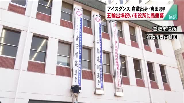 アイスダンス 倉敷市出身 吉田唄菜選手 五輪出場祝い懸垂幕