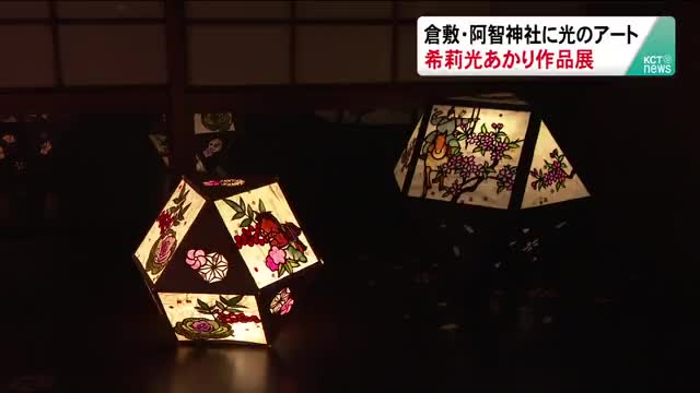 切り絵を照らし出す光のアート「希莉光あかり」の作品展が、倉敷市の阿智神社で開かれています。 阿智神社の車道中腹にある斎館で行われている作品展には、秋と冬をテーマにした20点を超える希莉光あかりが並びました。 希莉光あかりは、切り絵に和紙を重ねて照らし出す光のアートで、倉敷を拠点に活動する和あかり創造集団「倉敷光作所」が手掛けています。 まもなく新年を迎えることから今年の干支・巳の作品の隣には、きのう...