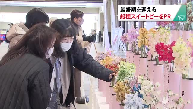 最盛期を迎えている倉敷市船穂町特産のスイートピーを多くの人に知ってもらおうと倉敷駅前でPRイベントが行われました。 甘い香りとかわいらしい花びらが特徴のスイートピー。 全国有数の出荷量を誇る倉敷市船穂町で最盛期を迎えています。 船穂スイートピーをより多くの人に知ってもらおうと倉敷駅前でPRイベントが開かれました。 式典でJA晴れの国岡山倉敷西アグリセンターの平松敬一センター長は「船穂スイートピーは国...