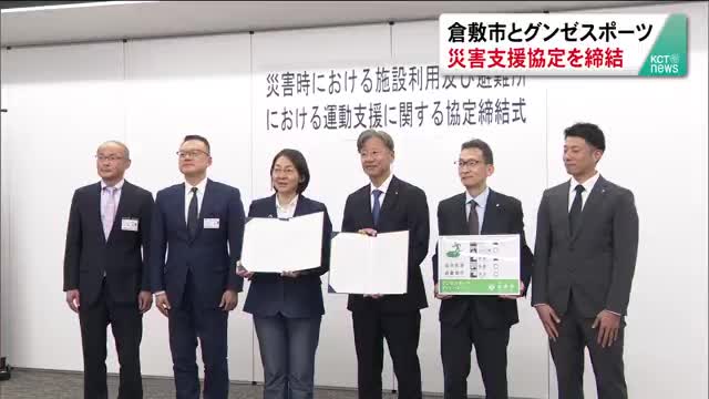 倉敷市は、市内でスポーツクラブを営む企業と災害発生時の一時的な避難所の提供や避難者の運動支援に関する協定を結びました。 災害支援協定の締結式には、倉敷市の伊東香織市長やグンゼスポーツの西村仁宏社長など6人が出席し、協定書に署名を行いました。 この協定によって、災害発生時に市が避難情報を発表した際、倉敷市本町のグンゼスポーツアイビースクエア店を指定緊急避難所として利用することができます。 また、避難生...