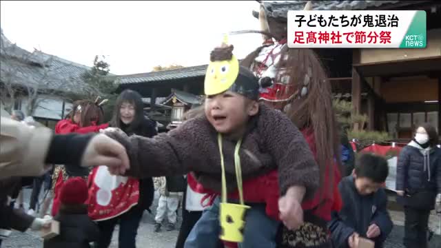 倉敷市笹沖にある足髙神社で初めて節分祭が行われました。 季節の変わり目に無病息災を願う「節分祭」。 多くの子どもたちに参加してもらおうと午後5時から行われました。 子どもたちはマスに入った豆を受け取ったあと境内に集まりました。 すると、大きなうめき声とともに鬼が現れました。 子どもたちは境内に現れた鬼に向かって「鬼は外」の掛け声とともに豆を投げ元気いっぱい鬼を追い払います。 地域で鬼の歴史を伝える活動...