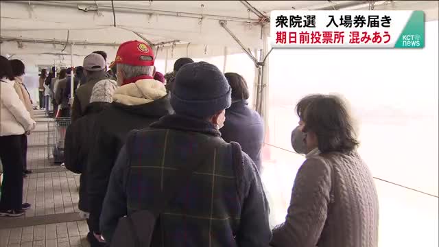 衆議院議員選挙の期日前投票が行なわれています。 多くの自治体で発送が遅れていた投票所の入場券が届きはじめ期日前の投票所では混雑が見られています。 倉敷市の期日前投票所の1つとなっている水島支所です。 倉敷市ではきのうから入場券ハガキが届きはじめています。 きょう午前11時には入場券を持った有権者が多く訪れ建物の外に長い列ができました。 水島支所では今回はじめて混雑に対応するため支所の外に特設テントを...