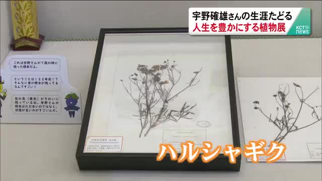 倉敷市出身の植物研究家・宇野確雄さんの人生をたどる企画展が、倉敷市立自然史博物館で開かれています。 会場には、倉敷市出身の植物研究家で元教員の故・宇野確雄さんが、およそ80年間にわたって集めた植物標本などが展示されています。 宇野さんのコレクションを中心とした企画展を行うのは、開館当初の展示以来となり42年ぶりです。 こちらの標本は、1903年、宇野さんが7歳の頃に採集したハルシャギクです。 旧菅生...