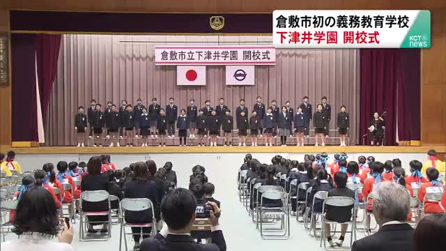 倉敷市で初めての義務教育学校下津井学園の開校式が行われ、新たな学校の誕生を祝いました。 仁科康教育長の開校宣言に続き、新しい学校の旗が、下津井学園の荻野正樹校長に渡されました。 児童生徒が考えた新しい校章が描かれています。 開校式は、児童生徒のほか地域住民や保護者などあわせて250人が出席して行われ、学校設置者の伊東香織倉敷市長が式辞を述べました。 倉敷市 伊東香織市長 そして、児童生徒の代表が新し...