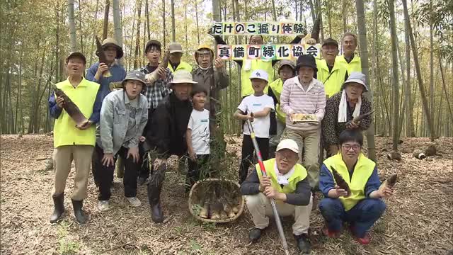 真備町で特産のアレを楽しむイベントが開かれました。 採って楽しい、食べておいしい今が旬のアレです。 この時期、真備町の竹林では、このような声が響きます。 今が旬のタケノコ掘りです。 倉敷市真備町緑化協会では、真備町特産のタケノコを身近に感じてもらおうと、毎年タケノコ掘りの体験会を開いています。 今年は、地元・真備町を中心に市内から親子連れなど15人が参加しました。 体験会は、緑化協会の会員が管理する竹...
