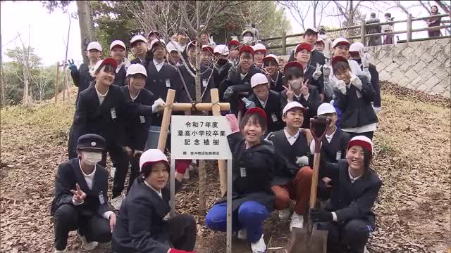倉敷・足高山にサクラ 葦高小6年児童が卒業記念植樹
