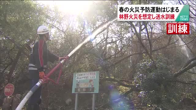 春の火災予防運動はじまる 林野火災を想定し送水訓練