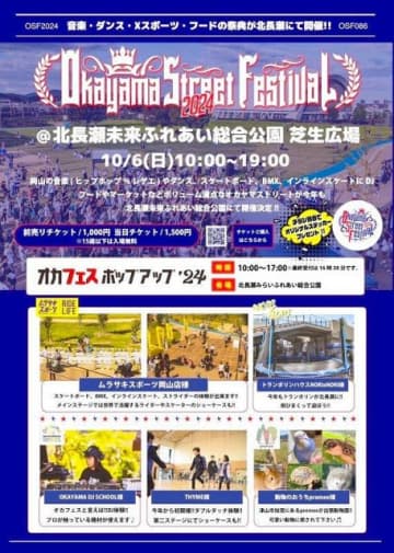 音楽やアーバンスポーツ楽しもう 岡山で10月6日フェスティバル