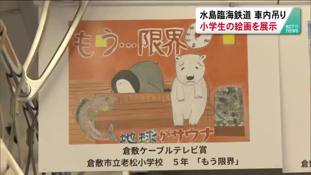 水島臨海鉄道 列車内に小学生の絵画を展示