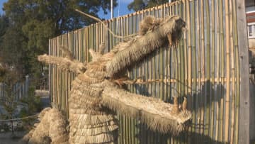 全長4m!神社に巨大な「辰のお飾り」 地元特産のイグサ使用 岡山・早島町