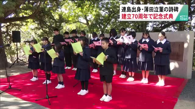 詩人・薄田泣菫の詩碑 建立から70周年で記念式典