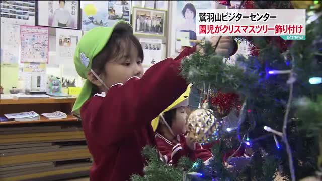 鷲羽山ビジターセンター 園児がクリスマスツリー飾り付け