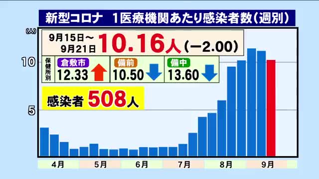 県内「定点把握」 9月15日 ~ 9月21日 コロナ感染者 前週より減少