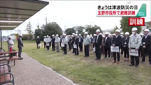 きょうは津波防災の日 玉野市役所で地震避難訓練