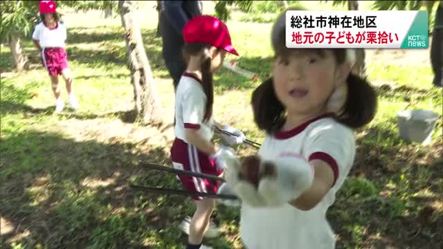 総社市神在地区 地元の子どもたちが栗拾い
