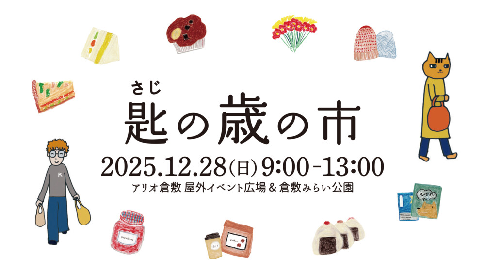 クリスマスが終わると一気に年の瀬モードになりますよね! 2025年12月28日(日)、年末の恒例イベント「匙(さじ)の歳の市」が今年もアリオ倉敷の屋外イベント広場&倉敷みらい公園で開催されます! いつもの「おはよう市」よ...