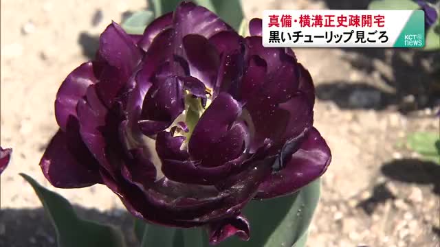 真備・横溝正史疎開宅 黒いチューリップ見ごろ